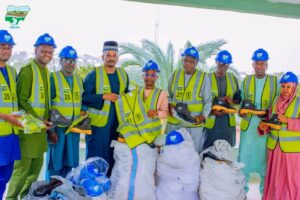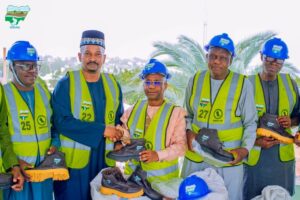 The donation includes 150 reflective jackets, 50 safety boots, and 50 customized helmets, which will be deployed during the monthly sanitation exercise across the state. Dr. Jauro urged the ministry to ensure judicious distribution and proper use of the equipment.